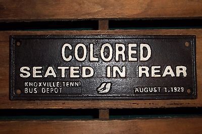 Title (ebay affiliate link): Cast Iron Segregation Sign "Colored Seated in Rear" Knoxville Bus Depot 1929