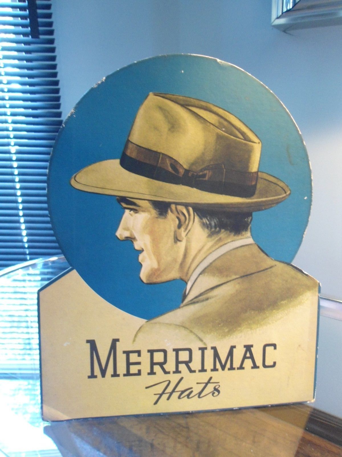 Art Deco " MERRIMAC HATS Easel Advertising Sign, Stetson, Kuppenheimer, Arrow