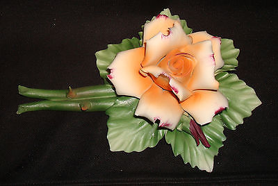 Title (ebay affiliate link): Capodimonte Italy Peach Pink Rose Flower Leaves Thorn Stem Table Figurine NICE