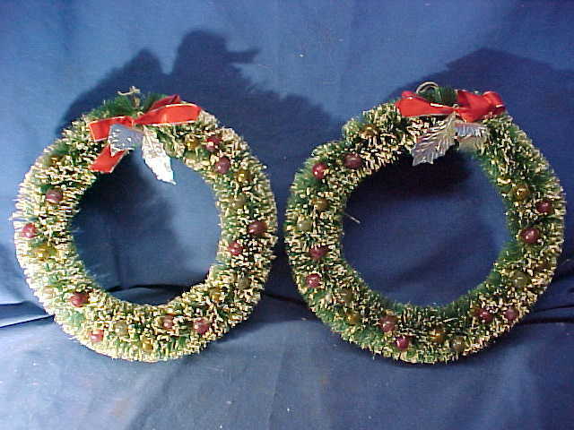1930s BOTTLE BRUSH Type CHRISTMAS WREATHS w GLASS Ball ORNAMENTS 9"