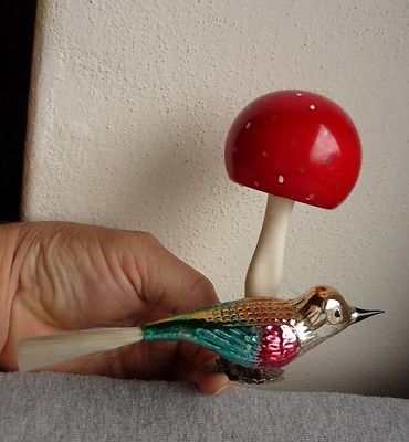 Title (ebay affiliate link): VTG.GLASS BEADED BIRD AND MUSHROOM CHRISTMAS TREE ORNAMENT ON CLIP