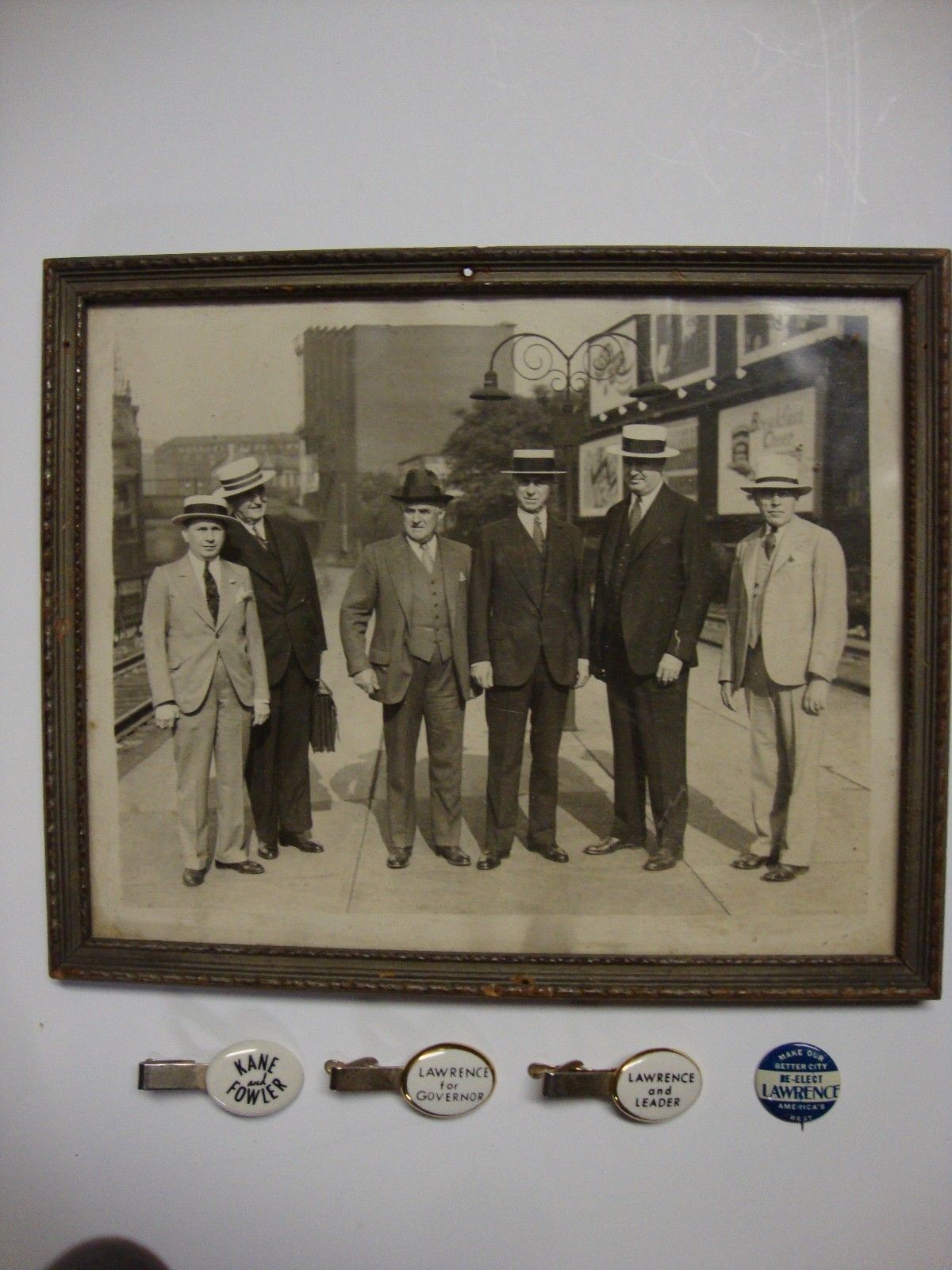 VINTAGE 1940'S-60'S DAVID LAWRENCE PHOTO/TIE CLASPS/PIN BACK MAYOR/GOVERNOR PA.