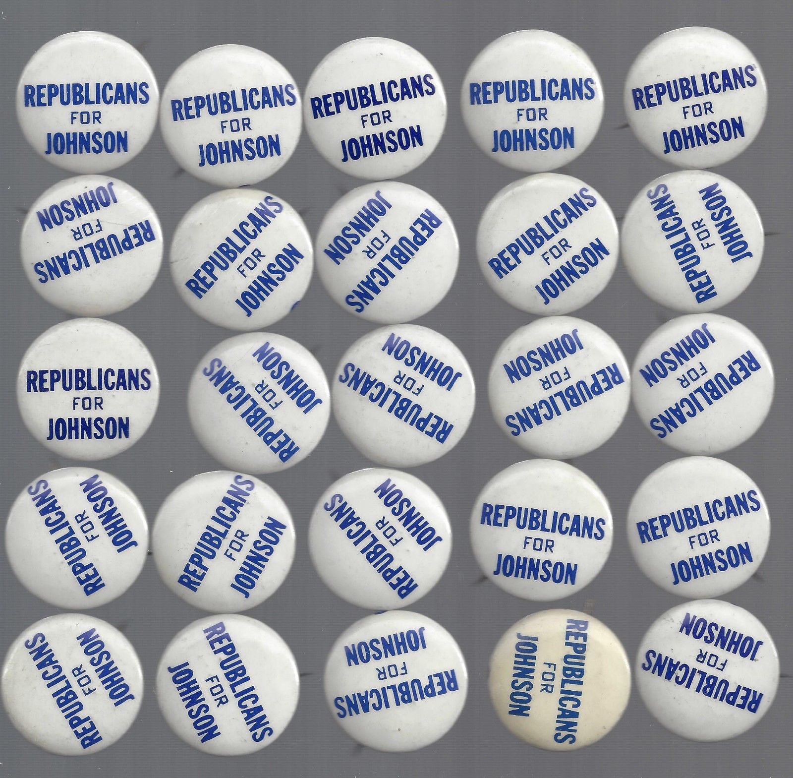 Title (ebay affiliate link): 1964 REPUBLICANS FOR LBJ JOHNSON b/w 1 1/4" CELLO CAMPAIGN BUTTONS - 12 TOTAL
