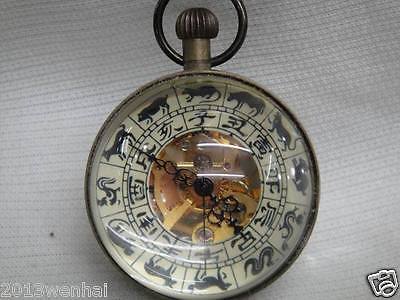 Work CHINESE OLD BRASS GLASS pocket watch BALL clock