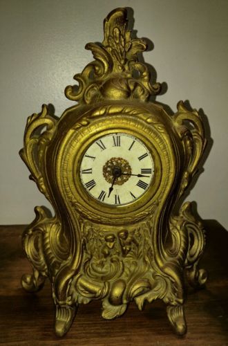Title (ebay affiliate link): BEAUTIFUL, ANTIQUE CAST IRON SHELF/MANTEL CLOCK, PATENT 1906/1908, WORKS