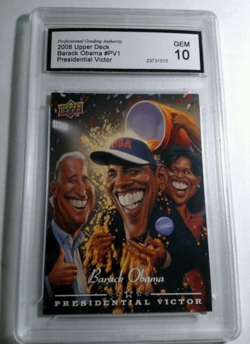 Title (ebay affiliate link): 2008 Upper Deck Barrack Obama #PV1 Presidential Victor Trading Card, Gem Mint 10