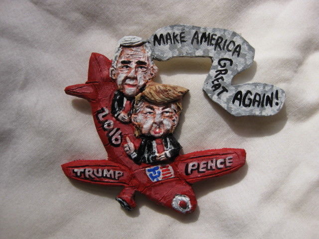 Title (ebay affiliate link): Donald Trump & Pence Skywriting 2016 Presidential Campaign Novelty pin