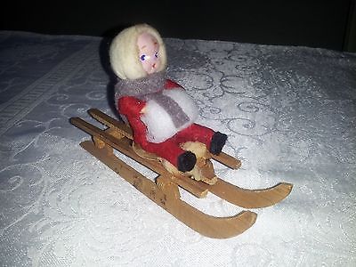 Vintage Christmas Child on Sleigh, composition face, spun cotton
