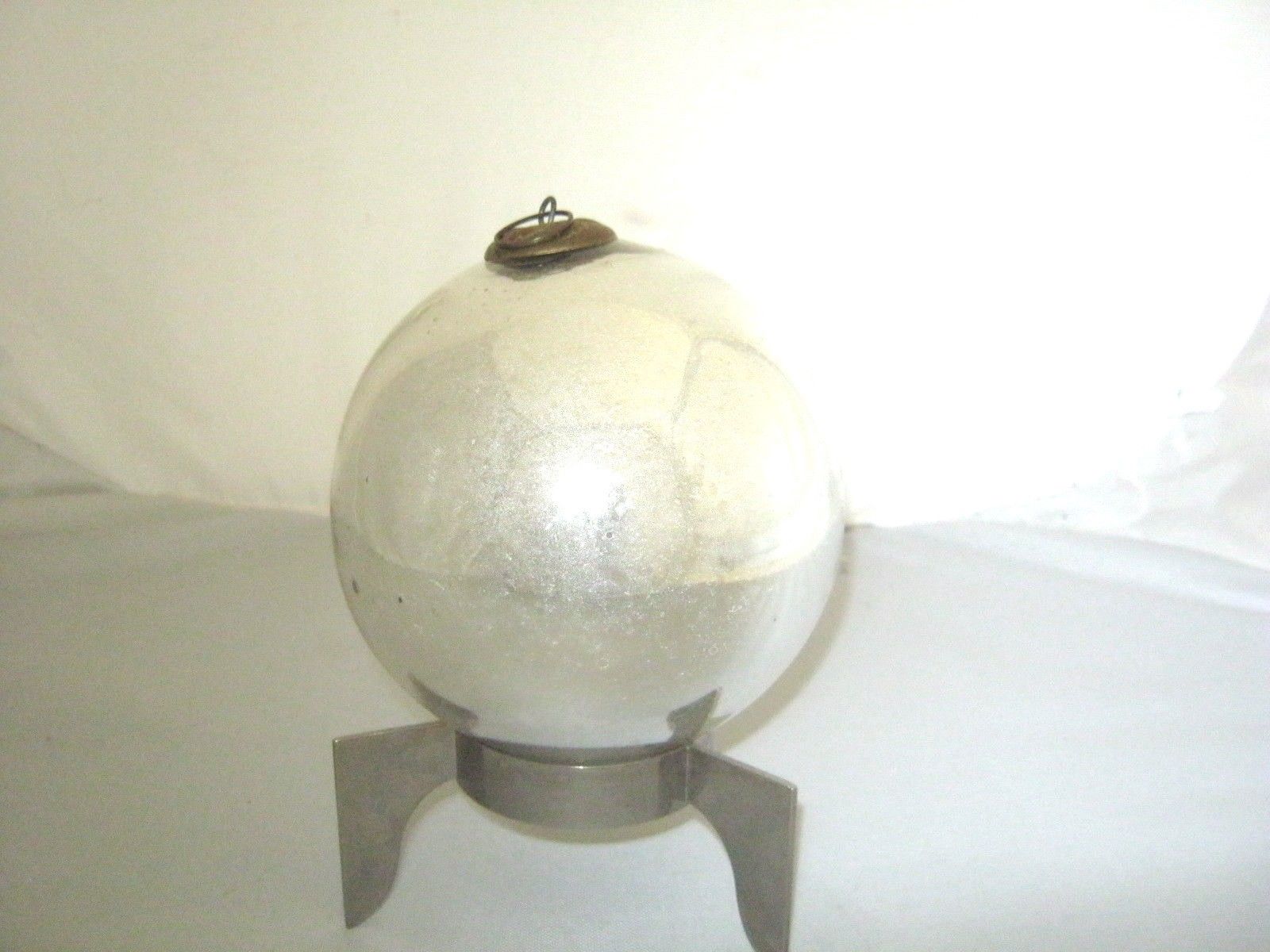 ANTIQUE CHRISTMAS ORNAMENT, SILVER KUGEL, 5 LEAF WITH VEINS CAP, 4"