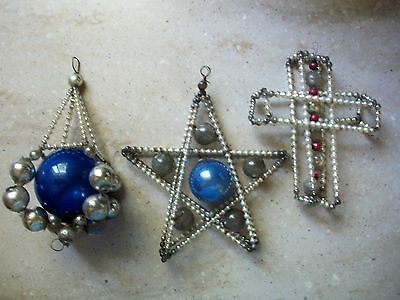 Lot Of 3 Antique Mercury Glass Victorian Czech Beaded Christmas Ornaments
