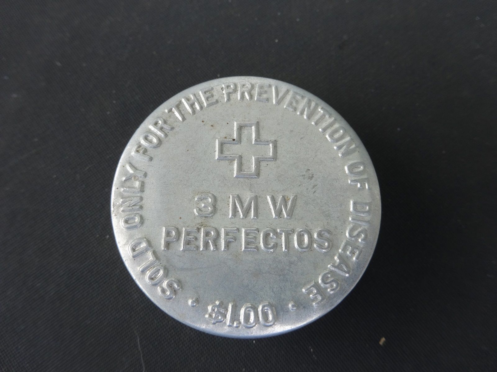 Title (ebay affiliate link): PRE 1930s MERRY WIDOWS PERFECTOS PROPHYLACTIC (CONDOM) TIN