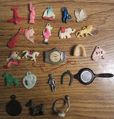 VINTAGE LOT 23 CRACKER JACKS GUMBALL CHARMS PRIZES