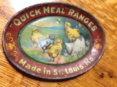 Vintage Advertising Oval Tin Tip Tray Chicks "QUICK MEAL" RANGES - rare