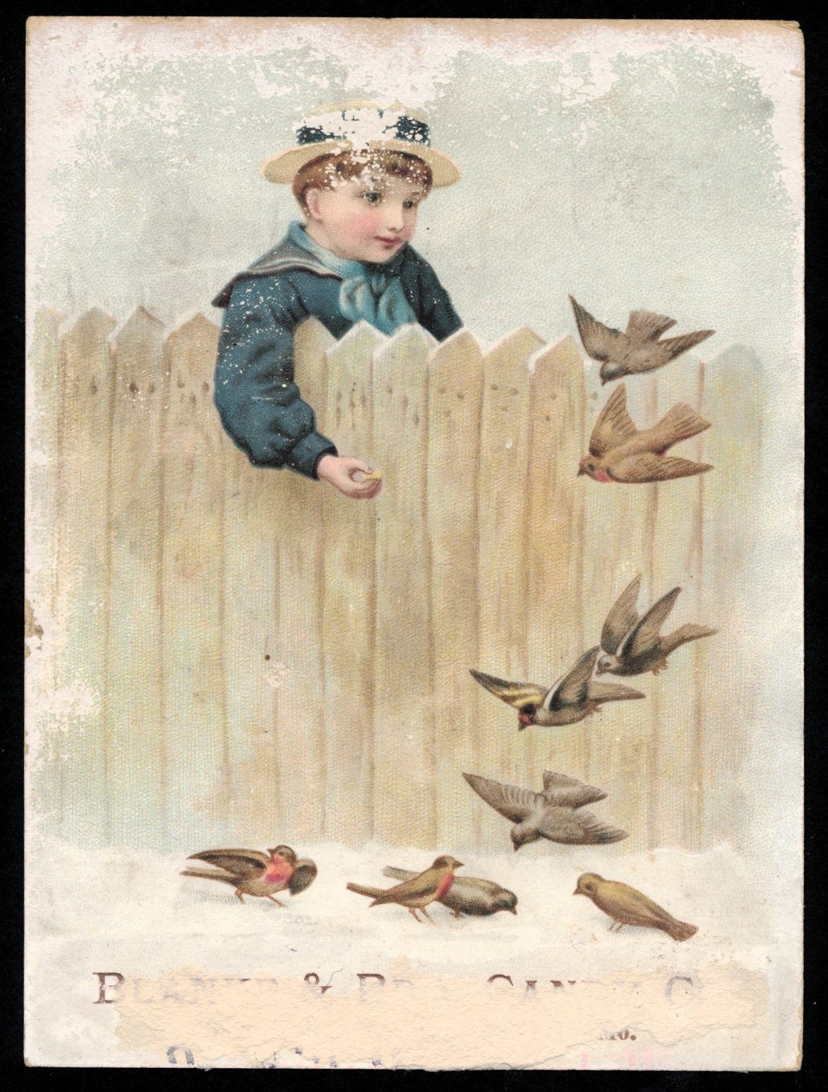 DR JIM STAMPS US VICTORIAN TRADE ADVERTISING CARD YOUNG BOY FEEDING BIRDS