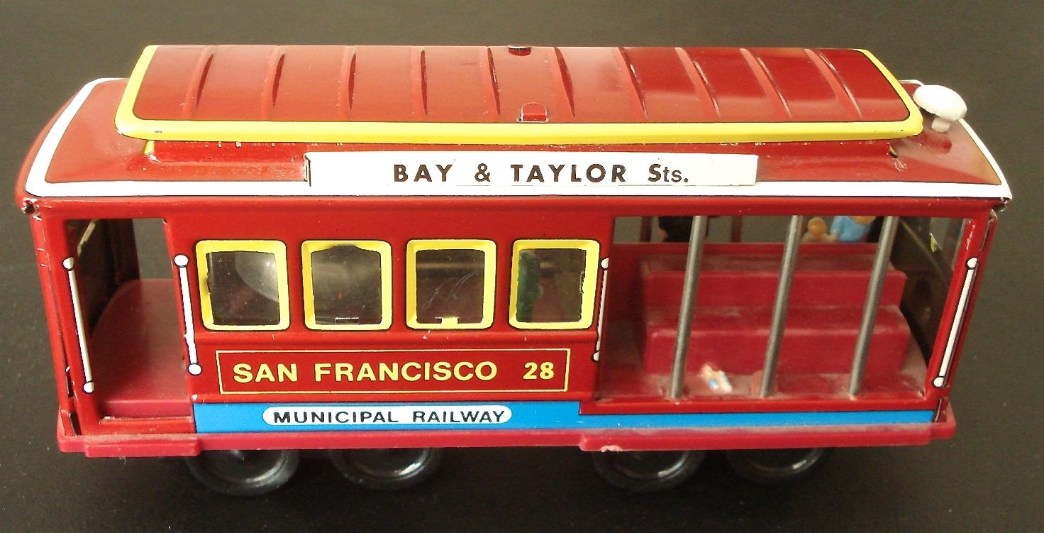 Title (ebay affiliate link): Vintage San Francisco Cable Car #28 Tin Litho Friction Trolley with Bell
