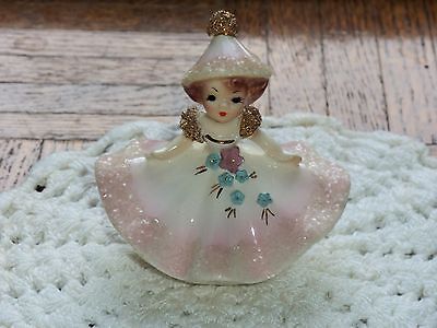 VTG JOSEF ORIGINALS PINK SPARKLE GOLD TONE ACCENTS DRESS POTTERY GIRL FIGURINE