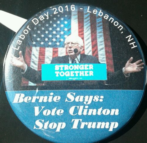 Title (ebay affiliate link): Bernie Sanders in Lebanon, NH for Hillary Clinton Labor Day - One Day Event Pin