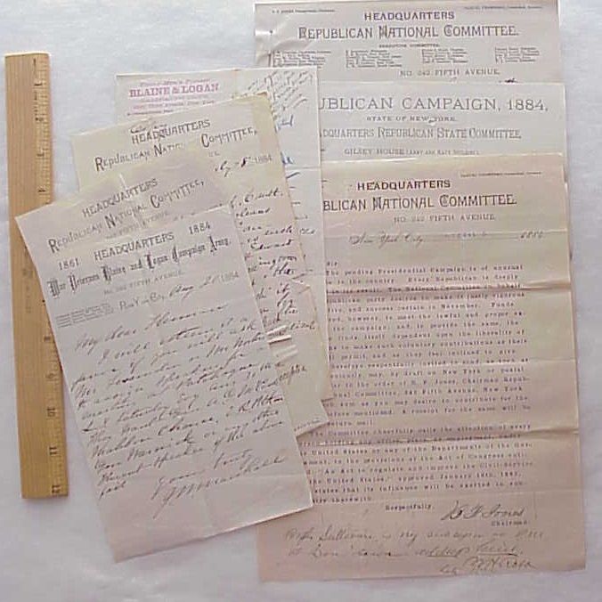Title (ebay affiliate link): Lot of 7 1884 Blaine Logan New York City Campaign Letter 6 Different Letterhead