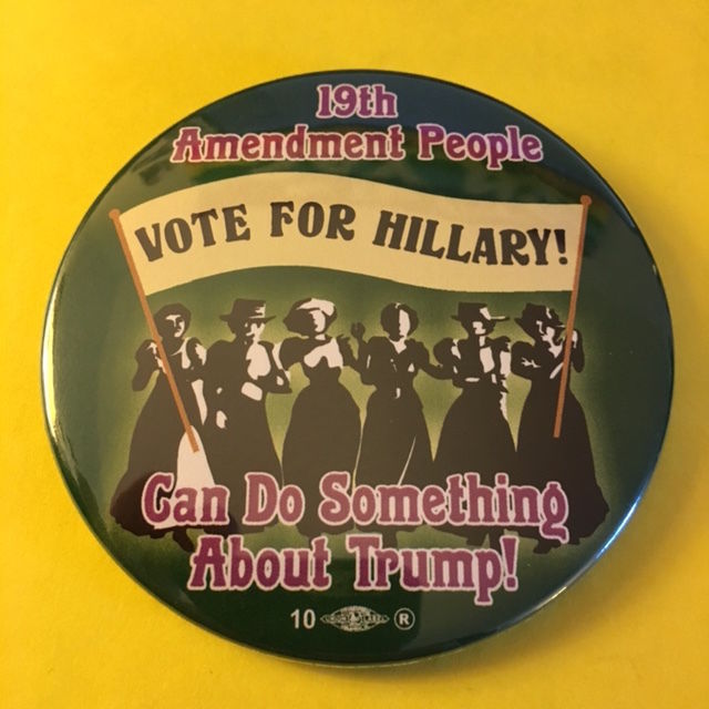 Title (ebay affiliate link): 19th Amendment People Vote for Hillary 3 Inch Political Campaign Pin Button