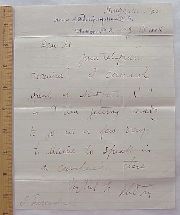 Title (ebay affiliate link): 1884 Blaine Campaign Letter US Representative John D Long Massachusetts Governor