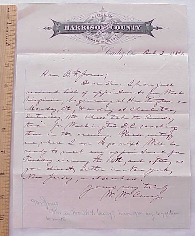 Title (ebay affiliate link): 1884 Blaine Logan Campaign Letter Harrison County Clerk Cadiz Ohio Letterhead