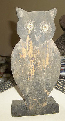 Antique Vtg Primitive Wooden Folk Art OWL Figural Doorstop w Button Eyes
