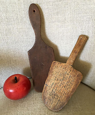 LOT of 2 Old Primitive Carved Wooden Butter Paddle Scoops Country Kitchen AAFA