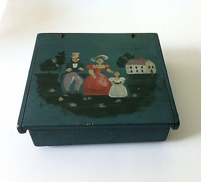 Title (ebay affiliate link): Vintage Primitive Early American Style Folk Art Tole Painted Footed Wood Box