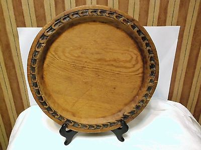 ANTIQUE PRIMITIVE COUNTRY WOOD BREAD CUTTING BOARD~ROUND w/BORDER 11 1/2 in