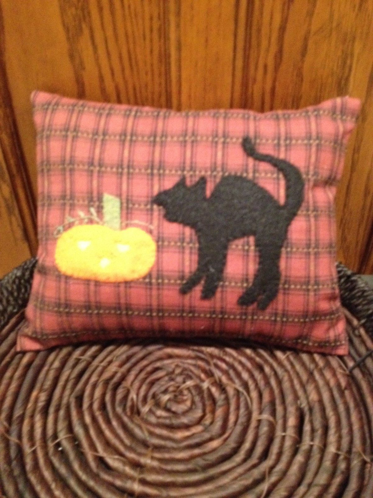 Title (ebay affiliate link): Primitive Stitchery Black Cat Ornie Bittersweet Plaid Autumn Halloween