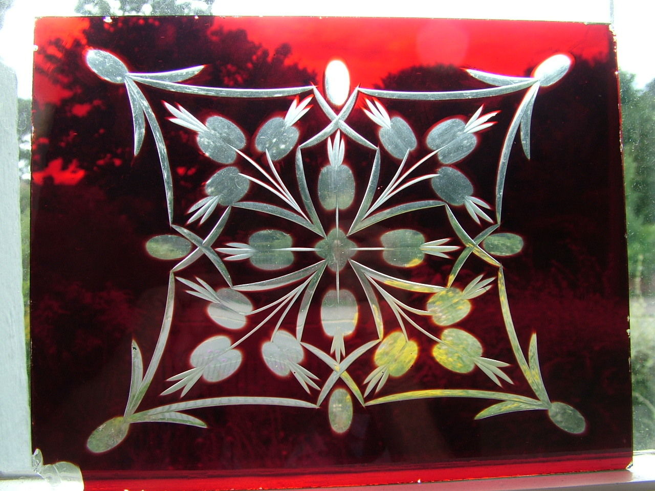 Title (ebay affiliate link): ANTIQUE CRANBERRY CUT GLASS PANEL from C19th HALL PORCH LANTERN. WINDOW or DOOR