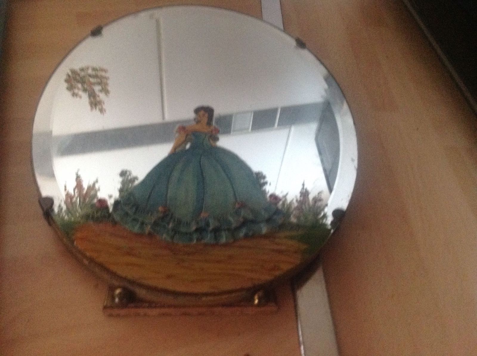 rare, Art Deco vintage free standing crinoline lady,mounted mirror,10"x8"