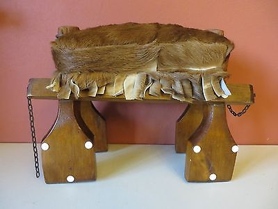 Vintg CAMEL STOOL Wood/Fur Bench