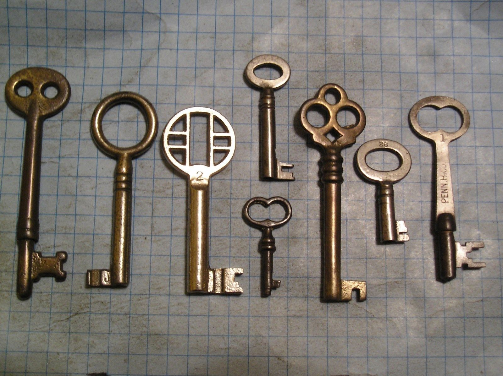 Title (ebay affiliate link): LOT OF 8 ANTIQUE SKELETON, FURNITURE, BARREL, CABINET AND OLD LOCK KEYS