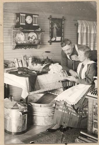 Title (ebay affiliate link): rppc UNUSUAL INTERIOR vtg photo COUPLE w HOUSEHOLD UTENSILS ANTIQUE FURNITURE
