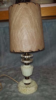 VINTAGE CUSTARD GLASS LAMP WITH FIBERGLASS SHADE ELECTRIC WORKS