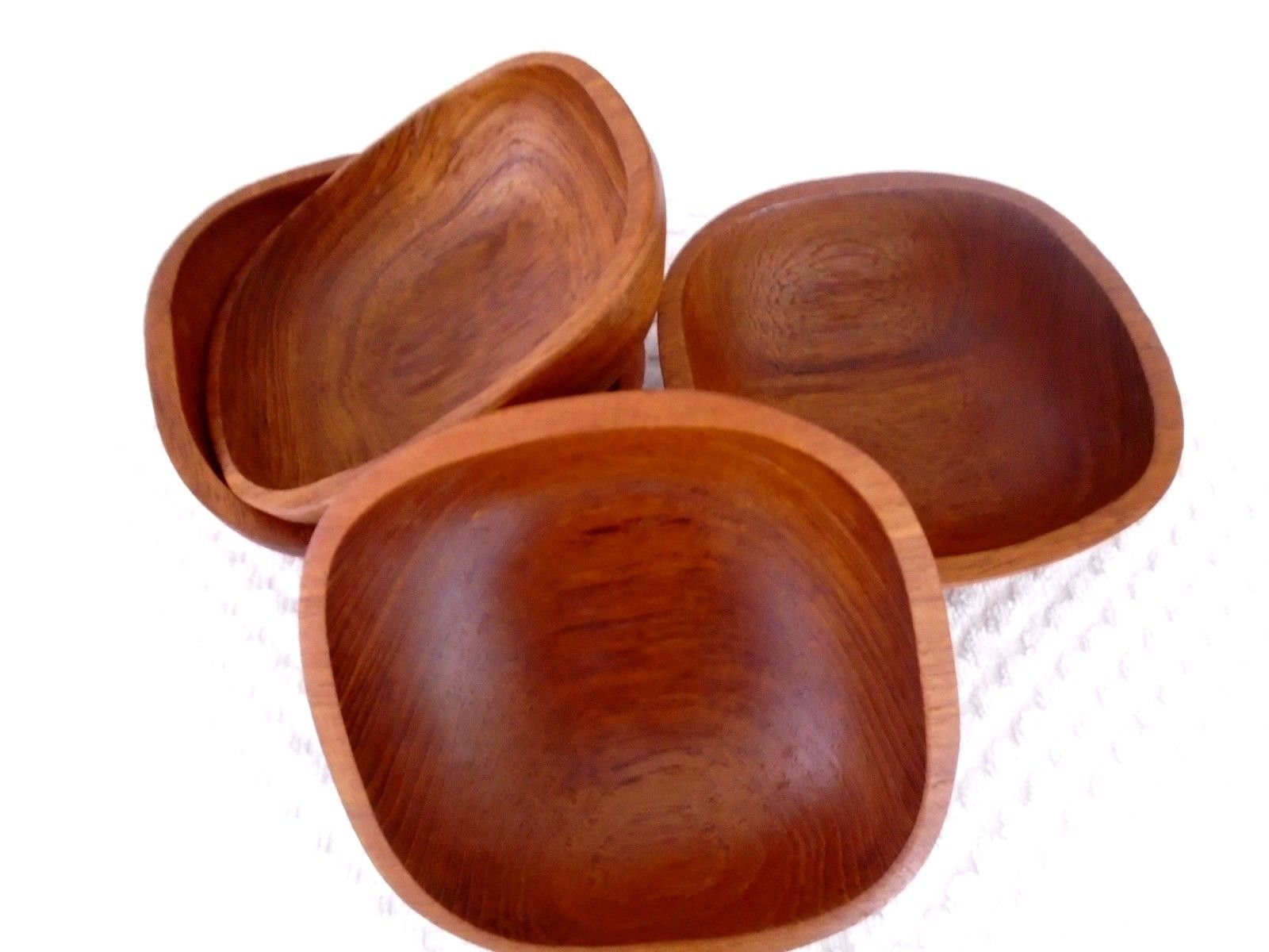 4 Vintage Mid Century Modern Teak Wood Salad Bowls Benjamin Medwin ??