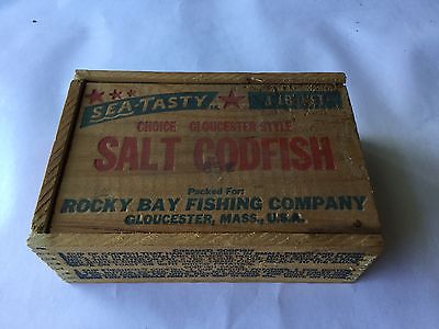 Antique Codfish Box Cobalt Blue/Red Advertising Wooden Box