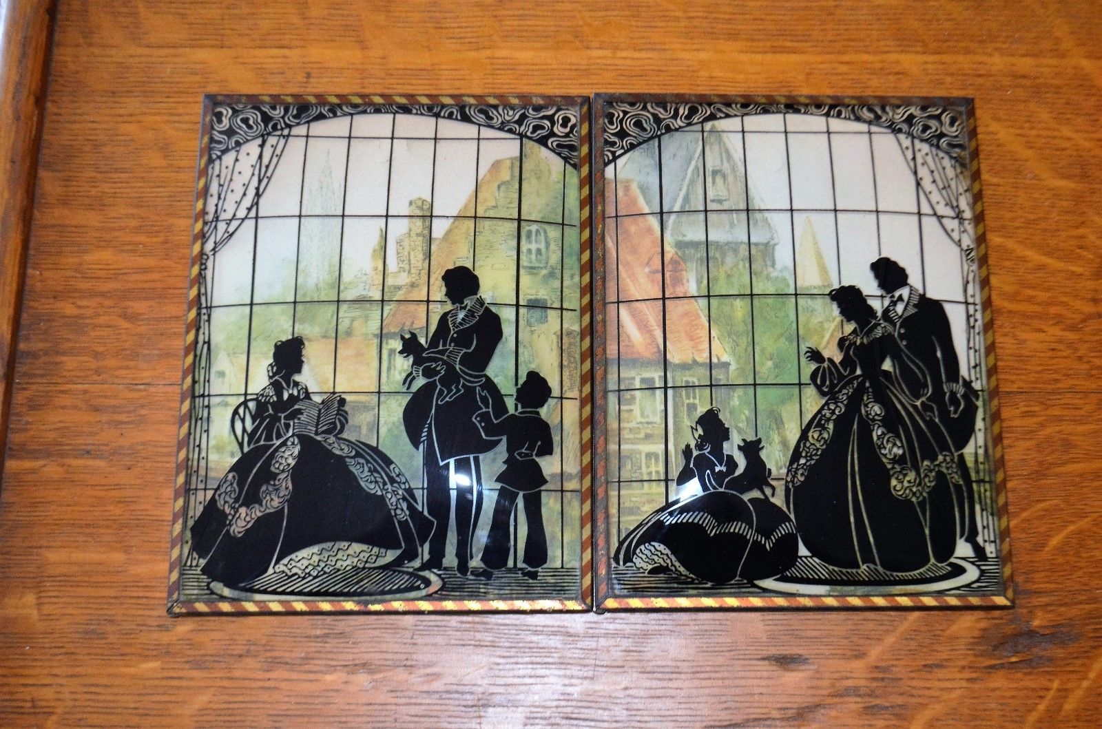 Title (ebay affiliate link): 2 Vtg. Silhouette Venetian Scene 1940's Puppy Convex Curved Glass Copper Frames