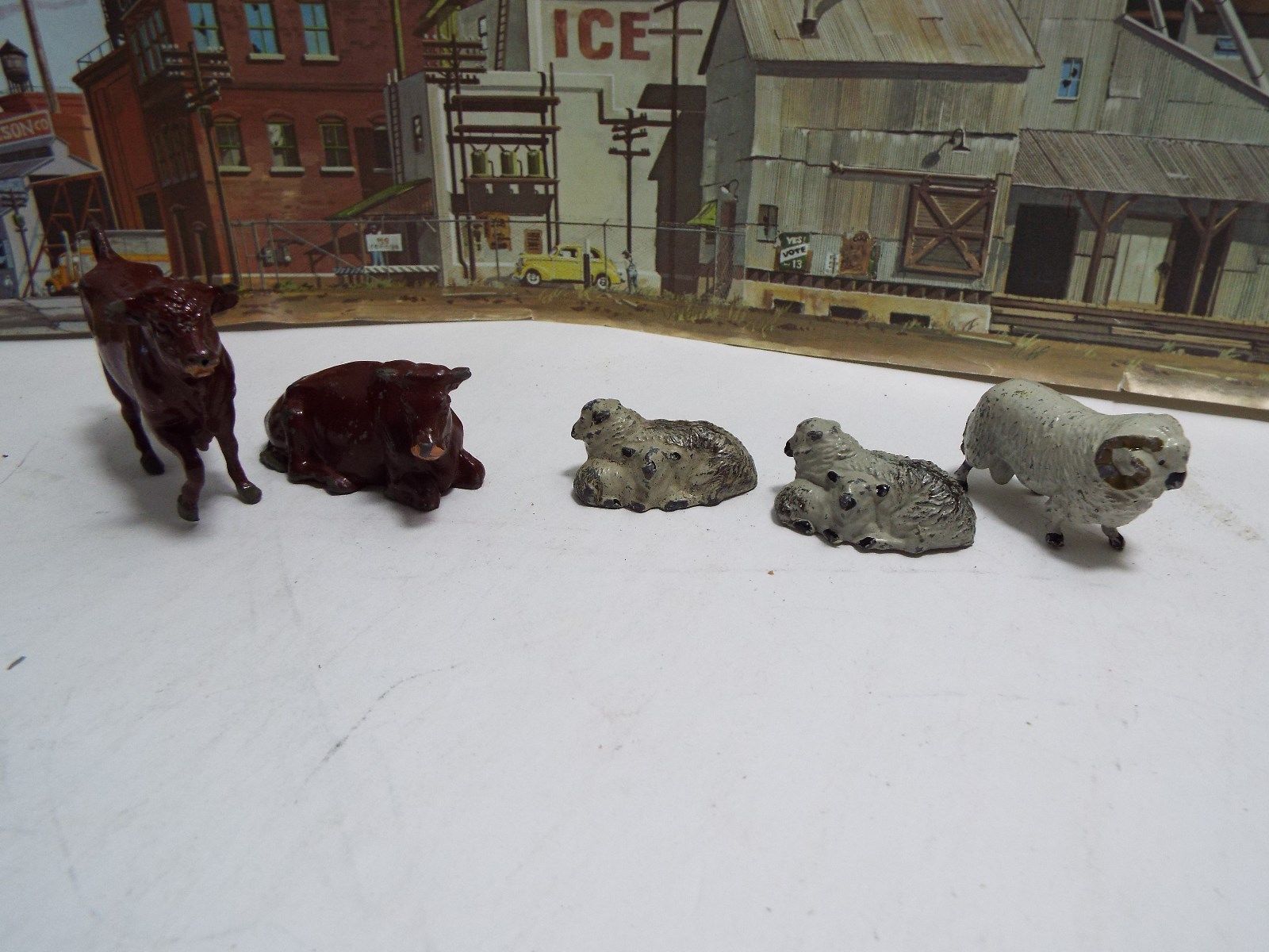 vintage METAL LOT of 5 JOHILCO LEAD ANIMALS COWS STEER SHEEP made in ENGLAND
