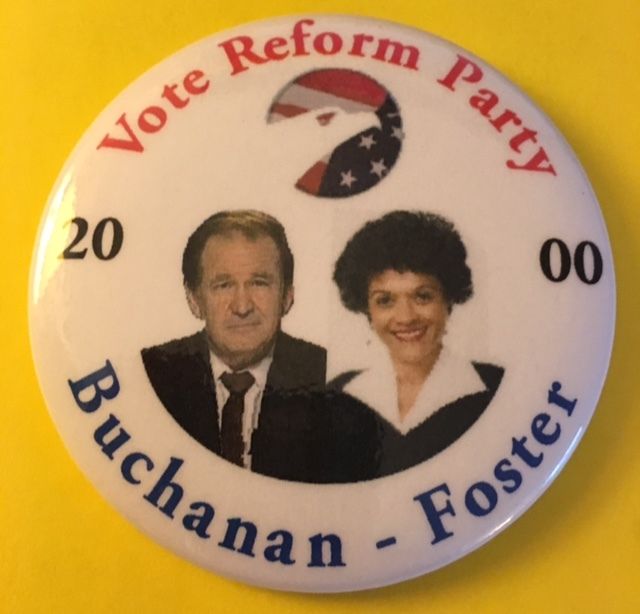 Title (ebay affiliate link): Pat Buchanan and Foster 2000 Vote Reform Political Campaign 3 Inch Pin Button