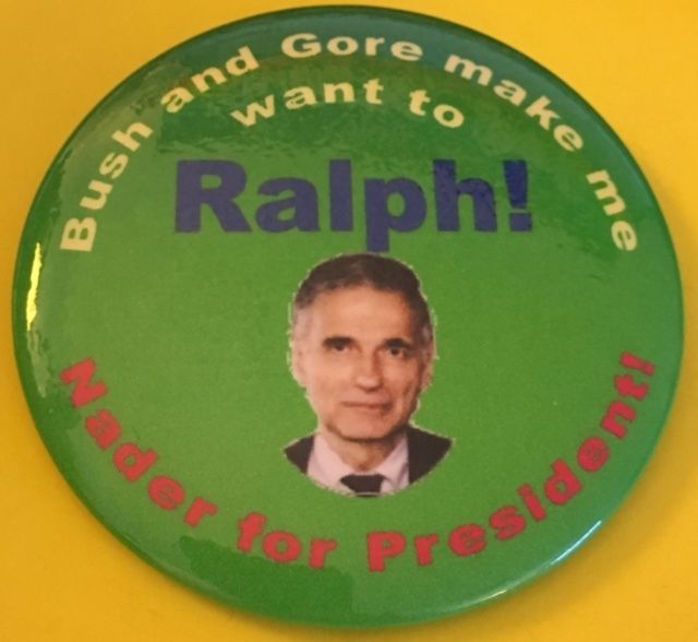 Title (ebay affiliate link): Ralph Nader for President Anti-Bush/Gore Political Campaign 3 Inch Pin Button