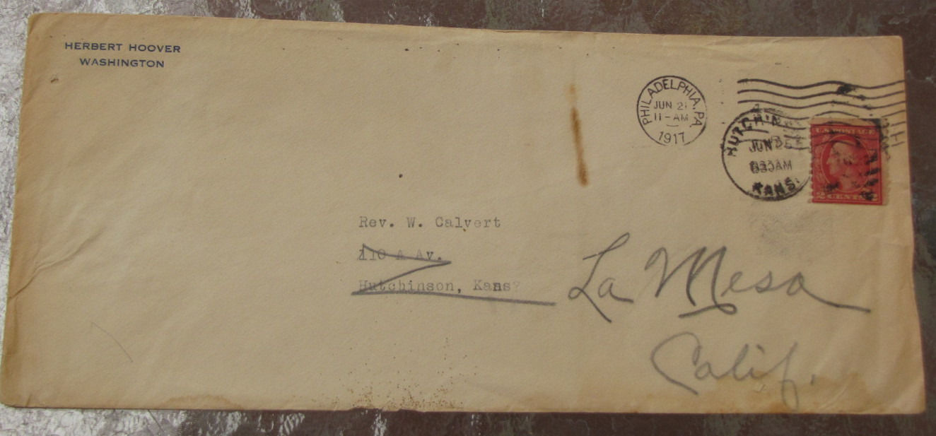 Title (ebay affiliate link): 1917 HERBERT HOOVER WASHINGTON ENVELOPE W/ 2 CENTS STAMP