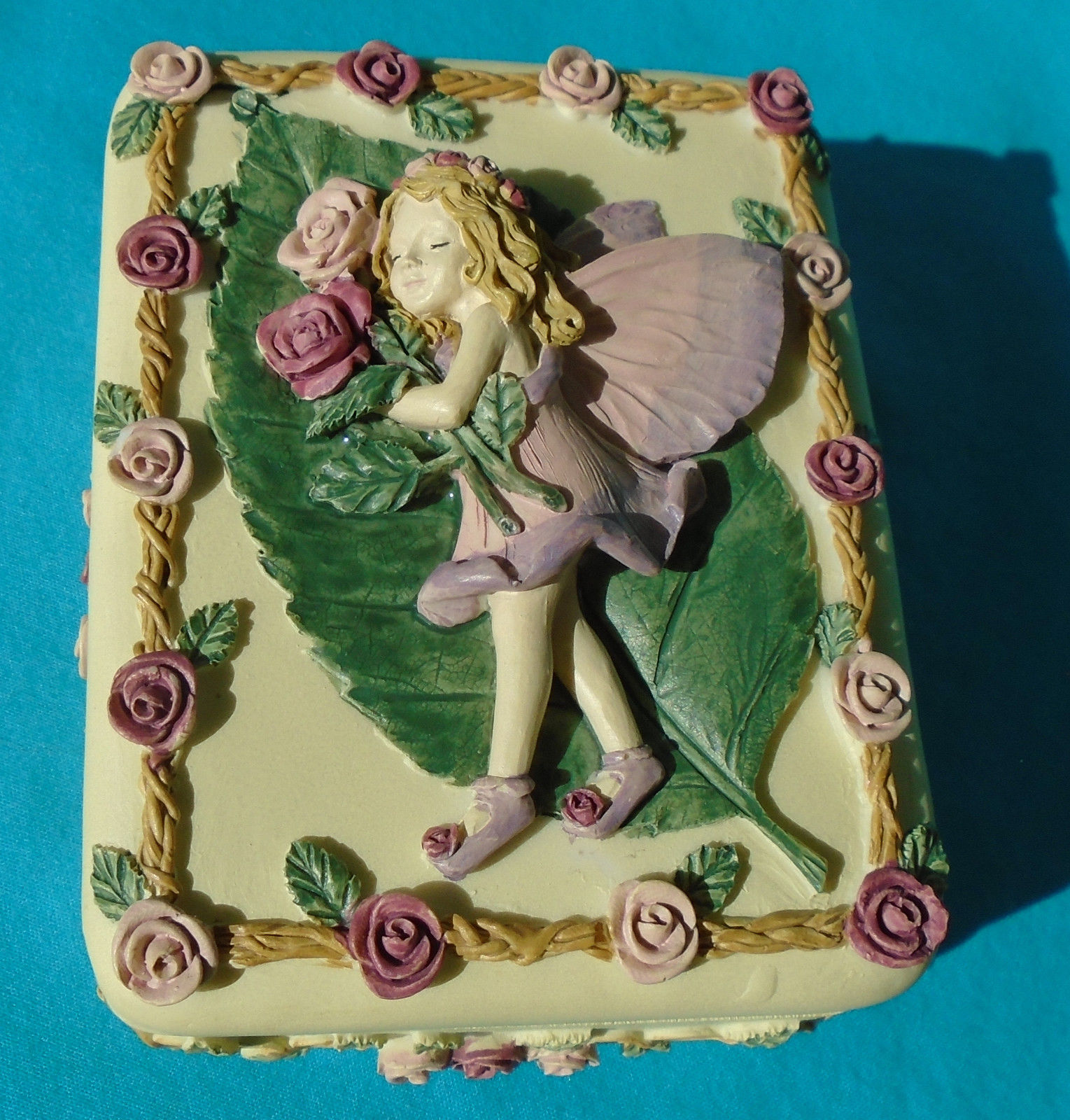 Title (ebay affiliate link): vintage 1993 Dezine Fairy Trinket Box, 3D hand-painted resin keepsake container