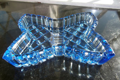 Title (ebay affiliate link): ART DECO BLUE PRESSED GLASS BUTTERFLY DISH DEPRESSION