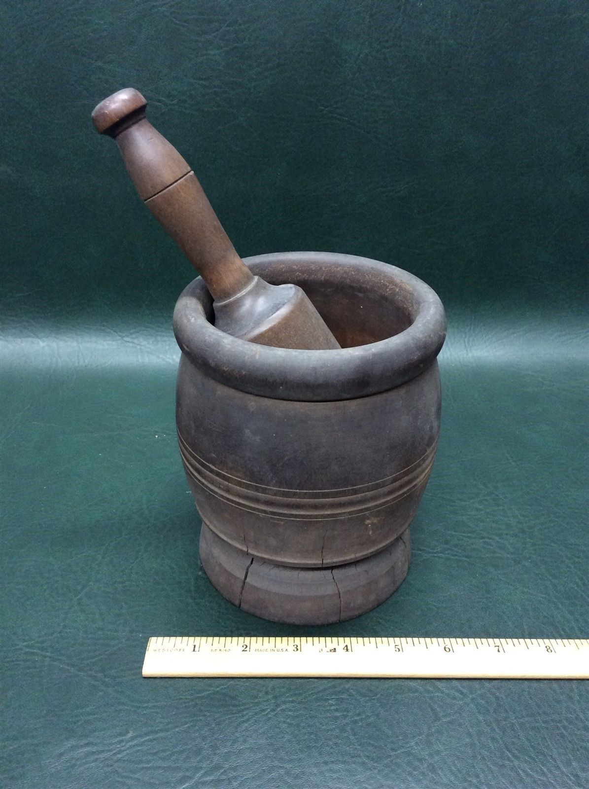 Title (ebay affiliate link): Antique Primitive Turned Wooden Mortar and Pestle Apothecary Pharmacy Tools