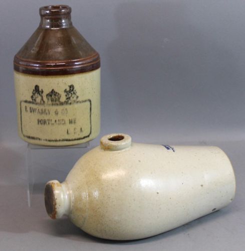 Antique American Primitive Stoneware Henderson Foot Warmer E Swasey Whiskey Jug