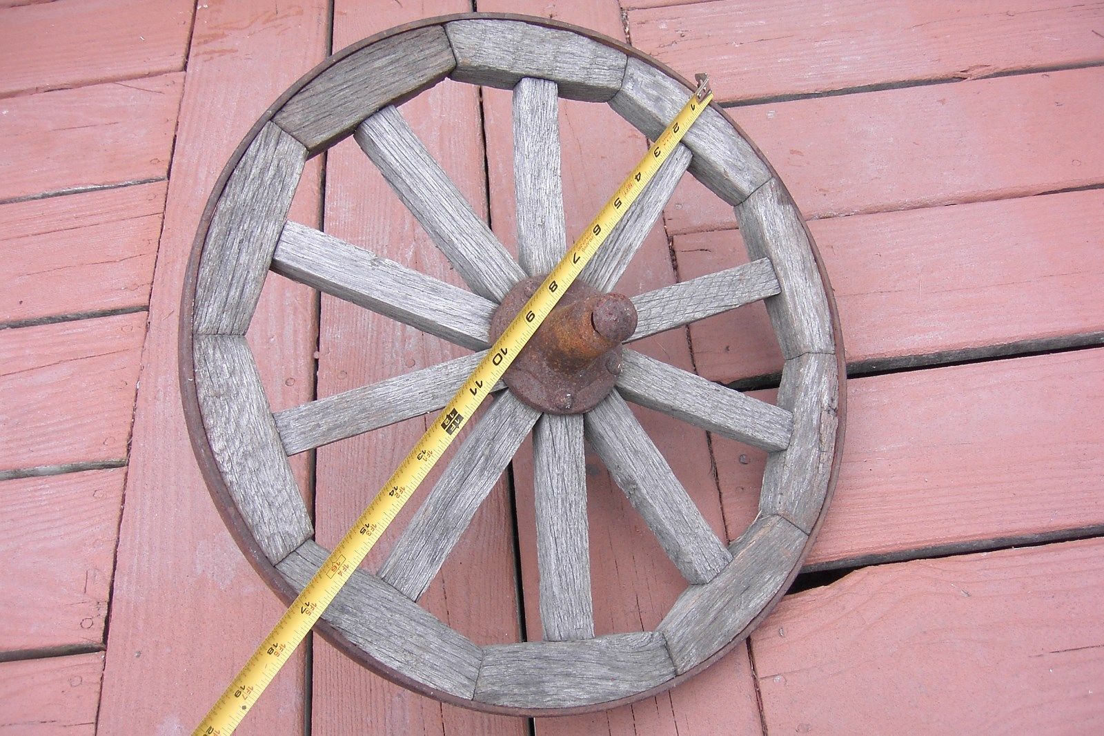 Title (ebay affiliate link): Antique Wood and Metal 17" Cart/ Wheel Barrel Wheel