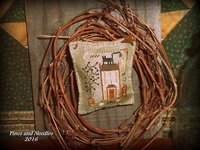 ~Primitive Cross Stitch Cupboard Hanger - House on Pumpkin Hill