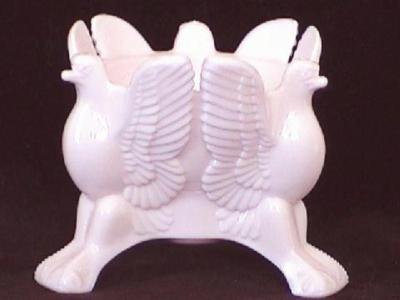 Title (ebay affiliate link): JEANNETTE PINK MILKGLASS BIRD DOVE? EAGLE? CANDLEHOLDER